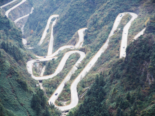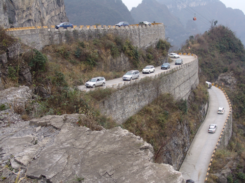 6日,來自長沙金鷹955自駕會所的50臺自駕車齊聚天門山天路,舉辦“挑戰(zhàn)通天大道,體驗心跳之旅”的自駕活動。這是通天大道在2008年度迎來的第六次大型自駕活動。