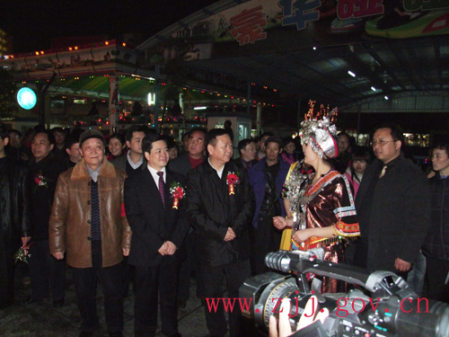 2月3日是農(nóng)歷正月初九,晚上18:30分,2009年張家界市城區(qū)“狂歡張家界”大型春節(jié)群眾民族文化活動盛大燈展開幕式在大庸府城隆重舉行。市委書記胡伯俊,市政協(xié)主席周元庭,市委常委、政法委書記陳美林,市委常委、宣傳部長肖凌之以及永定區(qū)委、區(qū)政府領(lǐng)導(dǎo)等出席開幕儀式。胡伯俊為2009年張家界市城區(qū)“狂歡張家界”大型春節(jié)群眾民族文化活動盛大燈展活動開啟啟動按鈕,2009年張家界市城區(qū)“狂歡張家界”大型春節(jié)群眾民族文化活動正式啟動。