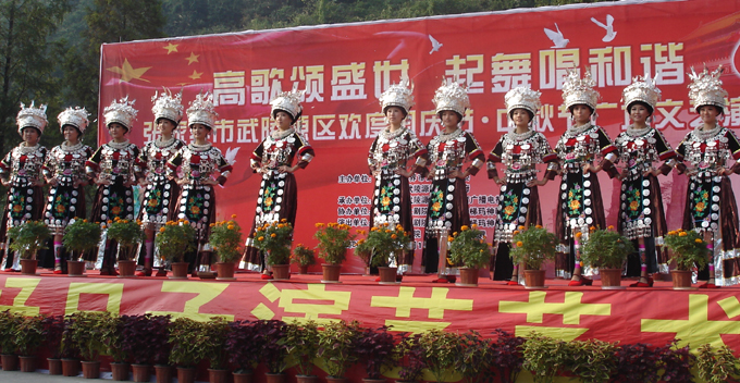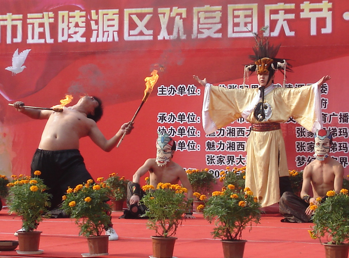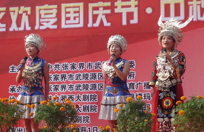 武陵源門票站為游客表演豐富的土家文藝節(jié)目(組圖)