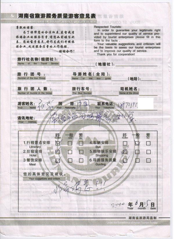 常德張超一行12人旅游質(zhì)量回饋:非常滿意!