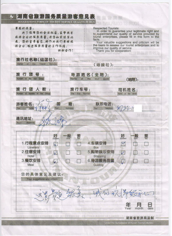 寧波陳旦珍一行6人旅游質(zhì)量回饋