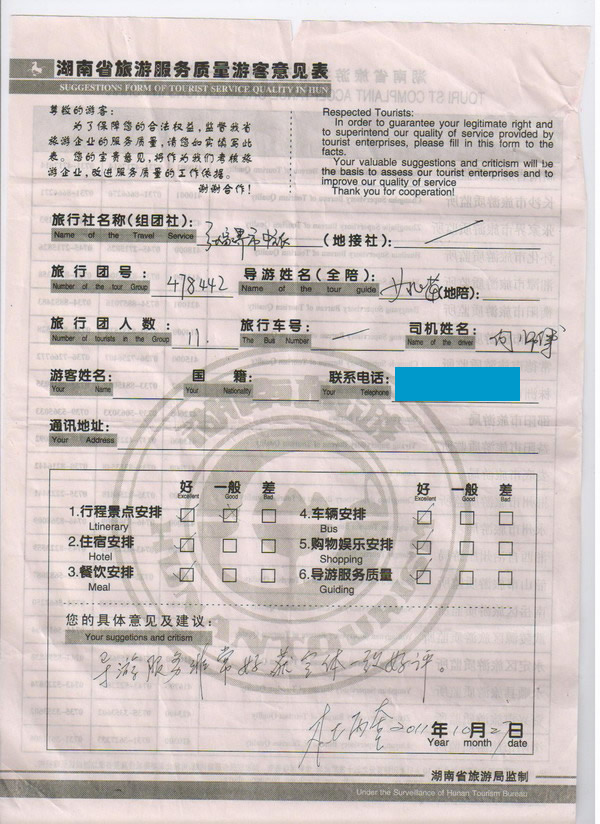 河南杜先生一行11人旅游質(zhì)量回饋: