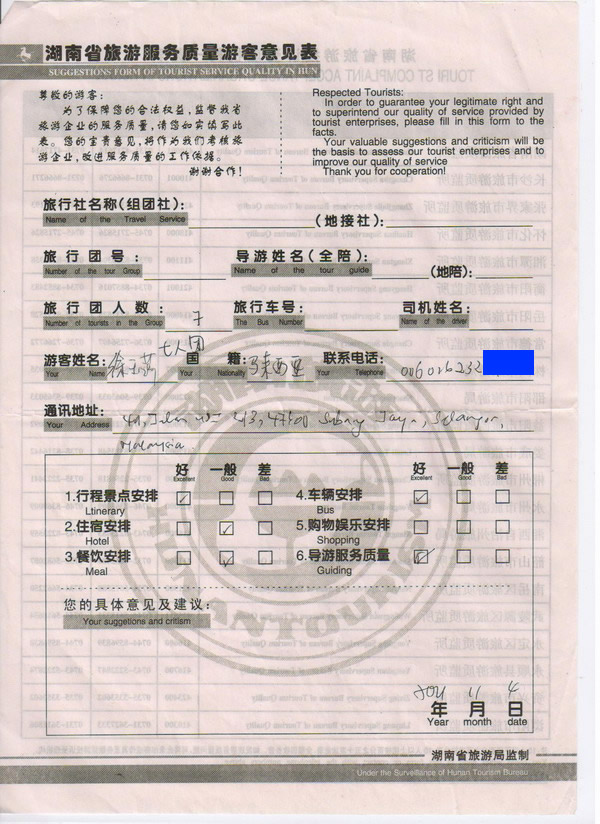 馬來西亞徐小姐一行7人旅游質(zhì)量回饋