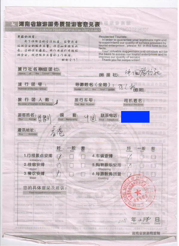 香港陳先生一行8人旅游質(zhì)量回饋