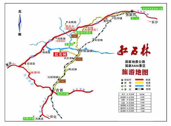 紅石林國家地質(zhì)公園位于湘西自治州宋祖英的家鄉(xiāng)——古丈縣境內(nèi)。紅石林國家地質(zhì)公園是張家界至鳳凰旅游黃金走廊上的一顆明珠,是中國唯一的紅色碳酸鹽石林,與“芙蓉鎮(zhèn)”隔酉水河相望,景區(qū)集巖溶、峽谷、溶洞、湖泉、瀑布于一體,具有極高的地質(zhì)科研、美學觀賞和旅游景觀價值,被譽為“武陵第一奇觀”。2005年被國土資源部授予國家地質(zhì)公園稱號,2006年被評為山水人文類的“新瀟湘八景”之一的“酉水畫廊”,2013年榮膺“中國最美地質(zhì)公園”評選第一名,2013年被評為國家4A級旅游景區(qū)。