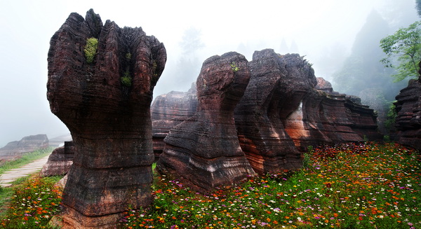 據(jù)地質(zhì)專家考證,紅石林巖石形成歷史約有4.5億年,屬地史上所稱的揚(yáng)子古海,經(jīng)地殼運(yùn)動(dòng)和侵蝕、溶蝕作用形成。整個(gè)景區(qū)融紅、秀、峻、奇、絕、古于一身,山峰、峽谷、溶洞、石像等交錯(cuò)融合。據(jù)景區(qū)工作人員透露:本次紅石林國(guó)家地質(zhì)公園“尋寶”活動(dòng)還包括傳統(tǒng)土家族擺手舞、千年厄巴舞、古丈苗鼓等文藝表演,結(jié)合獨(dú)特的喀斯特地貌,為參加活動(dòng)的游客增添不少樂(lè)趣。