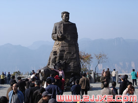 賀龍元帥是中華人民共和國的開國元勛,人民解放軍的締造者之一。他就出生在天子山西邊桑植縣洪家關的一個農民家庭,從兩把菜刀砍鹽局首義起,一生充滿傳奇色彩,元帥家鄉(xiāng)流傳著無數(shù)關于他的故事與傳說。天子山一帶,曾經是賀龍、任弼時、肖克、王震等將軍打過游擊的地方。一回,賀龍在鑼鼓塌被民團包圍了,當?shù)乩习傩占敝猩牵奄R龍卷在斗墊里,躲過了殺身之禍。這個故事至今還在這一帶流傳。 |