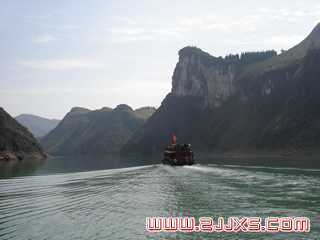 [覃垕槍]從釣魚臺(tái)順河下行2公里,有段開闊河面,湖光山色令人賞心悅目。游人可以仰望北岸峭壁上的“覃垕槍”。槍桿插在一百多米高的峭壁石窟上,有碗口粗,長(zhǎng)約3米,呈紅褐色。傳說(shuō)覃垕當(dāng)年曾經(jīng)用過(guò)這支標(biāo)槍,又說(shuō)是覃垕晾衣篙。是槍?是篙?游客總想問(wèn)個(gè)水落石出,于是“覃垕槍”成了“槍篙之謎”。