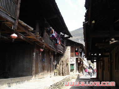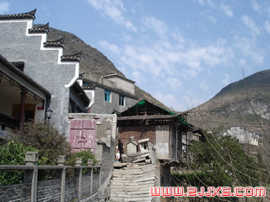 在這個(gè)山鎮(zhèn)上,我們還可以看見(jiàn)封火墻夾著吊腳樓的建筑風(fēng)格,也是在這一帶很少見(jiàn)到的。 |