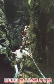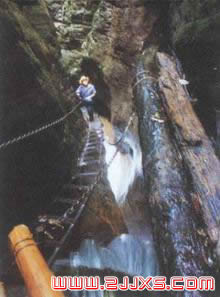 余米,最窄處僅容一人通過。從峽谷兩側(cè)山頂下至峽底,森林茂密,古藤纏繞,令人贊嘆;而峭壁坡陡路險,崎嶇難行。因峽深壁陡,林蔭蔽日,谷中很多地方終年難見天日。盛夏至此,亦覺寒氣襲人。