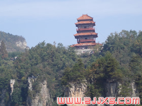 天子閣:這是六層四重檐穿頭式仿古建筑,高30米,由深圳市政府捐建。建立之初,本打算取名叫“深圳閣”,但遭到許多人(包括深圳人)反對(duì),認(rèn)為這樣與整個(gè)天子山的風(fēng)景不是很協(xié)調(diào)。不過(guò)從另一個(gè)角度來(lái)看,深圳人這種“經(jīng)營(yíng)城市”的意識(shí),卻非常值得張家界人學(xué)習(xí)。“欲窮千里目,更上一層樓”,登樓遠(yuǎn)望,天子山群峰盡收眼底,別有一番風(fēng)景。