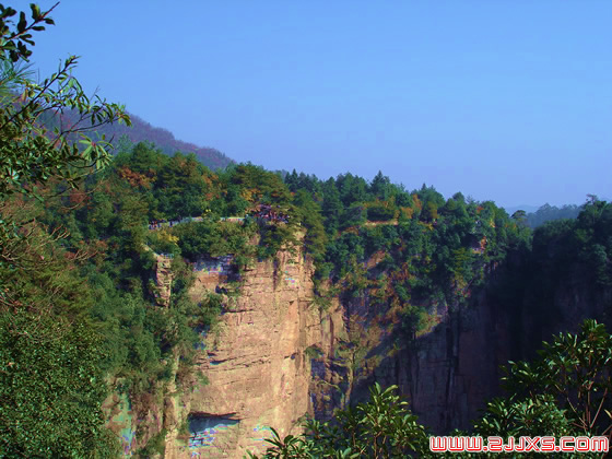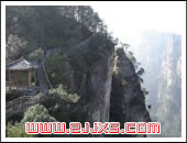迷魂臺分兩級, 第一級比第二級高2 米, 面積約100 平方米。 第二級懸空橫伸, 可坐十幾個人。 在這里眺望, 高低錯落的石峰若斷若連;團團薄霧飄渺如煙, 群峰時隱時現(xiàn),令人難辨天上人間。迷魂臺是取這里風光奇絕,令人意亂神迷馳魂奪魄之意。站在石臺上遠望,黃石寨和腰子寨連成了一幅半弧形的山水畫;金鞭溪和畬刀溝若隱若現(xiàn);腳下山谷中,成團成簇的巖峰間,云繚霧繞,有時 彌漫成壯闊的江流,現(xiàn)出江上數(shù)峰青的奇異圖畫。 這時,就自然而然想起古人的句子:日暮鄉(xiāng)關何處是?煙波江上使人愁。愁的是魂靈迷失在這片奇山異水之間,找不到歸途了。