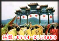這是土家族古老的祭祀舞蹈。相傳八寶為古代土家先祖八個部落的首領(lǐng),人稱“八部大王”、“八部大神”,后來,八位首領(lǐng)先后戰(zhàn)死。后人為紀(jì)念他們,便精心制作了八個銅鈴,并按八部王在位時(shí)穿的八幅羅裙,騎著象征祖先騎過的寶馬,手搖銅鈴,翩翩起舞,高唱祭祖求福的古歌,以示懷念。因?yàn)榘藗銅鈴代表八個首領(lǐng),就把這種舞蹈取名為“八寶銅鈴舞”。 |