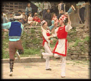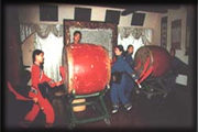 仗鼓舞是張家界市桑植縣白族獨(dú)有的一種民族舞蹈。仗鼓舞以“仗鼓”作道具,與朝鮮族鼓舞有異 曲同工之妙。鼓長(zhǎng)1.2米,兩頭大如碗口,用皮革繃面,中細(xì)可握, 形如木杵。相傳南宋末天寶年間,有谷、王、鐘三姓兄弟在蒙將兀良“寸白軍”服役,后“寸白軍”被遣散,三人從云南大理流落到桑植縣定居。某年臘月,白族兄弟們正在打糍粑準(zhǔn)備過年,一幫官軍突然圍寨抓人,白族人即用粑粑杵奮起反擊,將官軍打敗,白族人為慶賀這一仗的勝利,就以木杵作道具跳舞作樂,這便是仗鼓舞的由來。后來,白族人將粑粑杵改成鼓,配以笛子、嗩吶、大號(hào)和鑼鼓、鈸、磬等鳴樂伴奏,同時(shí)創(chuàng)造了八十一套舞蹈動(dòng)作,成為一種獨(dú)具風(fēng)格的民間舞蹈。 |