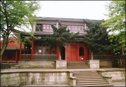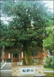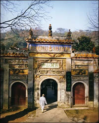 麓 山 寺 在岳麓山半腰,系晉初古寺,是佛教人湘最早的一所大 寺。明神宗時 更名為萬壽寺,民國初年復(fù)名,古麓山專。唐代大詩人杜甫曾用“寺門高開 洞庭野,殿腳插入赤沙湖”的詩句稱頌殿字宏大。大雄寶殿等主要建筑,于 1944年被炸毀,僅存山門和觀音閣,現(xiàn)已修整一新.山門上有“古麓出寺” 的橫額,兩旁為“漢魏最初名勝,湖湘第一道場"對聯(lián),門外古楓參天,濃 蔭覆蓋,門內(nèi)園圃百花爭艷。觀音閣為磚木結(jié)構(gòu),1955年曾加以修葺,1980 年再次修整恢復(fù)原貌,并在廳堂神龕中置觀音像。閻內(nèi)常舉辦小型書畫展 覽。觀音閣前有兩株羅漢松,左邊一株是六朝遺跡,稱“六朝松",樹 齡在1700年以上, 是岳麓山植物界的"元老", 老干新枝,紛繁翁 郁,彌足珍貴;右邊一株于清代被巨風拔去并被清代人補植。兩棵古松 并峙于閣前,游人樹下經(jīng)過,若入關(guān)隘,故有“關(guān)松"之稱。 六 朝 松 麓山寺自古居于岳麓山半腰。寺廟山門上有“古麓山寺”的橫額,兩旁為對聯(lián)“漢魏最初名勝,湖湘第一道場”,揭示出此寺久遠的歷史和在湖南佛教中的重要地位。寺門外古楓參天,濃蔭籠蓋,寺門內(nèi)園圃中百花爭艷。觀音閣為磚木結(jié)構(gòu),廳堂神龕中置觀音像。堂右有一口白鶴古井,因相傳時有白鶴飛止其上而得名。堂前有兩株羅漢松,枝干拳曲,針葉繁茂。左邊一株相傳為六朝所植,稱“六朝松”,樹齡在1700年以上,是岳麓山植物界的元老,彌足珍貴;右邊一株在清代被巨風拔去并由清人補植。兩棵古松并峙于閣前,游人從樹下經(jīng)過,如人關(guān)隘,故稱“松關(guān)”。這蔥郁古樹,引發(fā)著人們無限幽思,也仿佛向人們訴說著麓山寺的悠久歷史。 云 麓 宮 【云麓宮】位于長沙市岳麓山峰頂。屬道教二十三洞真虛福 地。明成化十四年(1478)吉簡王就藩長沙時所建。嘉靖年間(1522~1566),太守孫復(fù)與道人李可經(jīng)加以擴建,形成較完整的道宮格局。后圮。隆慶年間(1567~1572),在山修道的金守分請殿元張陽和為之倡修,于原址處募建三殿堂,前為關(guān)帝殿,中為玄武祖師殿,后為三清殿,名云麓宮。其建筑均石柱鐵瓦,古樸典雅,并在宮后增建望湘亭,供人憑欄遠眺。明末及清咸豐初,云麓宮兩度毀于兵燹。清同治二年(1863),按原格局再加以修葺,并在殿前后左右建五岳殿、天妃殿,又增建宮門。進士吳獬游此時為宮門題寫"對云絕頂猶為麓,救道安人即是宮"一聯(lián),聯(lián)內(nèi)隱"云麓道宮"四字,傳為佳作?谷諔(zhàn)爭期間,云麓宮殿堂、神像、碑刻遭到嚴重破壞。1946年,道人鄔云開、吳明海等籌款修復(fù)。于望湘亭中增置純陽真人(呂洞賓)浮雕石像,并刻真人所著《百字銘》。亭壁掛清人黃道讓"西南云氣來衡岳,日夜江聲下洞庭"木刻楹聯(lián)。"文化大革命"期間,云麓宮遭到嚴重破壞,F(xiàn)存道宮房屋600平方米,部分建筑由長沙市宗教部門管理。長沙市道教協(xié)會設(shè)此。云麓宮地處岳麓山巔,四周古木參天,景色宜人,是游人品茶、談聯(lián)、觀景、歇憩之地。 禹 王 碑 禹王碑位于岳麓山巔的蒼紫色石壁上,面東而立。碑文記述和歌頌大禹治水的豐功偉績。大禹繼父治水,“七年聞樂不聽,三過家門不人’的美談,倍受歷代人民尊重,流傳至今。岳麓禹碑高1.7米,寬1.4米,碑文分9行,每行9字,計77字,末行空四字。其文字形如蝌蚪,既不同于甲骨鐘鼎,也不同于籀文蝌蚪,很難辨認,很可能是道家的一種符錄,也有說是道士們偽造的。但遠在1200多年前,即為韓愈所聞及,還親登南岳岣嶁峰尋訪禹碑,并留有詩記。即使是唐宋時的膺品,作為紀念大禹治水之豐碑,也是十分珍貴的。全國有十風處鐫立禹碑,據(jù)說皆由岳麓禹碑模本復(fù)刻。
