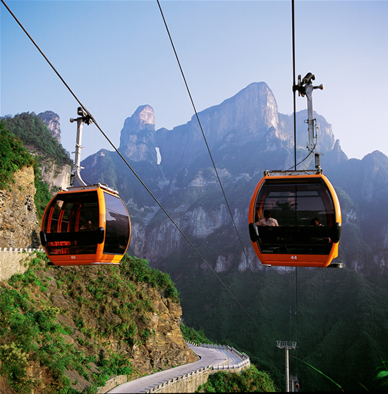 朋友們,天門山旅游到此結(jié)束。不久的將來,游人們就可以乘坐世界最高最長的天門山觀光索道來飽覽天門山秀色了。