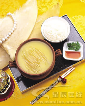 據(jù)記者打探到的可靠消息,近期天璽大酒店推出的譚家菜,由譚門正宗高廚原班團隊主理,為食客打造絕無僅有的美味佳肴。譚門高廚博采各方菜點之長,并根據(jù)湖南人口味和餐廳的特點進行了調(diào)整和創(chuàng)新,以海味魚翅烹制為主,其代表菜有:黃燜魚翅撈飯、酥皮南瓜翅、濃汁魚翅、木瓜燴魚翅、紅燒鮑魚、清湯菜膽翅等,其中又以黃燜魚翅撈飯最為上乘,而酥皮南瓜翅、木瓜燴魚翅則是首次登陸湖南地區(qū)!包S燜魚翅”首先是用水將上等的 “呂宋黃”發(fā)足、發(fā)透,再用母雞、肥鴨吊出上好鮮湯,加上金華火腿的中鋒,將魚翅文火達六,七個小時,然后調(diào)以干貝汁、火腿末和雞油等各種佐料,精工細作之后的“黃燜魚翅”形狀完整,色澤金黃,鮮美無比,配上一碗香糯的米飯,定會讓你味蕾大開,沁人的美味在嘴里陶醉搖蕩!難怪有人贊嘆為“人類飲食文明,到此為一頂峰”。