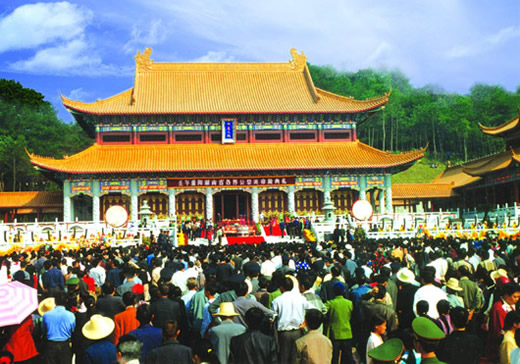 炎帝陵 :地處炎陵縣鹿原鎮(zhèn)鹿原陂,是中華民族偉大的人文始祖之一,炎帝神農(nóng)氏的安寢之地。陵殿金瓦紅墻,莊嚴肅穆,壯麗堂皇,成為炎黃子孫尋根謁祖之圣地。景區(qū)有神農(nóng)大殿、詠豐臺、圣火臺、天使館、御碑園等許多建筑群和景點。炎帝陵是全國重點文物保護單位、全國百個愛國主義教育示范基地之一、國家AAAA旅游景區(qū)。 Emperor Yandi Mausoleum The mausoleum of Yandi, where lies the tomb of Emperoer Yandi Shennong, one of the earliest ancestors of Chinese nationality, is located at Luyuan Slope, Luyuan Town, Yanling County. It has become a sacred place of Root Seeking and Ancestor Worship for all the descendants of Emperor Yandi and Emperor Huang.It is composed of the Shennong Palace, Yongfeng Terrace, the Holy Fire Alter, the Angel House and the Royal Tablet Garden. It is the State Preservation Unit of Key Historical Relics and a AAAA state tourist zone. 對炎帝陵的建設和祭祀活動,黨和國家領(lǐng)導人及地方政府領(lǐng)導歷來非常重視。1993年9月4日,國家主席江澤民欣然揮毫,為炎帝陵題寫陵款,并立碑于陵內(nèi)。1993年以來,湖南省人民政府舉行過四次大型公祭。1995年起,株洲市人民政府每年重陽舉辦炎帝節(jié)并祭祀炎帝陵。炎陵縣人民政府每年清明舉行祭祀活動。1993年世界華人華僑龍舟賽開幕式圣火和2000年“中華文明之光”圣火均在炎帝陵“圣火臺”采取火種。 炎帝陵的御碑園是一個見證歷史的長廊。對炎帝的祭祀,民間始于夏,官方見于周,帝王起于唐而興于宋。以后歷代皇帝便“三歲一舉,率以為!,每次祭祀完畢即刻御碑以作紀念。