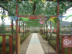 悅來溫泉旅游度假山莊開發(fā)了第一個鴛鴦泉——日式露天溫泉療養(yǎng)區(qū)和露天冷泉戲水區(qū);溫泉出水口溫度高達55℃,水中含有豐富的氡、氯、鈉、鈣、鎂等礦物質(zhì),侵潤其中,可謂調(diào)節(jié)身體機能,促進體內(nèi)血液循環(huán)和新陳代謝,尤其對慢性神經(jīng)炎、糖尿病、腸胃炎有明顯療效。冷泉戲水包括:冷泉瀑布、冷泉漂流、冷泉泳池,因冷泉常年水溫保持16℃,水中也富含多種礦物質(zhì),浸浴戲水,可消暑除燥,生津養(yǎng)顏,實屬炎熱避暑冬天調(diào)節(jié)體能之首選;此外,全國第二架自旋滑車、空中巴士、空中飛人、激流探險、飛龜?shù)榷鄠機動游樂項目,讓您體驗驚險、感受刺激;園內(nèi)還配有中餐廳、自助餐廳、燒烤場、桑拿中心、會議中心及度假別墅,功能設置完善。