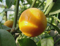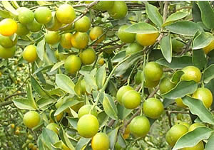 金柑是我國的傳統(tǒng)名果之一,在華南數(shù)省和長江流域均有分布。我省藍(lán)山縣栽培金柑已有140多年的歷史,面積達(dá)2000多畝,為我省重要的金柑生產(chǎn)基地。 藍(lán)山金柑,又名藍(lán)山金彈,為大果型良種,具有四大突出優(yōu)點(diǎn):果實(shí)佳,用途廣,耐貯運(yùn),銷路好,樹形矮小,分枝密集;便于管理,適于密植;生長快,結(jié)果早,產(chǎn)量高;受凍后恢復(fù)生長結(jié)果快,經(jīng)濟(jì)損失小,因而久負(fù)盛名。 金柑果實(shí)。有特殊芳香,營養(yǎng)豐富,既可生食,又宜加工成金錢桔餅、金錢花或金錢罐頭等;食之有順氣潤肺、化痰止咳、促進(jìn)消化、強(qiáng)壯身體之功。對治療氣管炎和哮喘病有良好效果,深受國內(nèi)外市場歡迎。