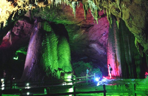 梅山龍宮位于新化縣柘溪庫區(qū)油溪鄉(xiāng)高橋村,依山伴水,與大熊山的九龍峰、九龍池一脈相通。洞道全長2276.1m其中地下河長854.5m。上層旱洞長1076.4m崩塌大廳長225m,支洞長120m。洞體層樓高聳造型奇特,組合多樣。既有大量發(fā)育未全、廣泛分布的流石景觀,又有多姿多彩的石筍、石鐘乳景觀,還有千變?nèi)f化的斷石形態(tài)與馀小形態(tài)景觀,F(xiàn)已開發(fā)旅游線路1455.3m,曲徑通幽,好評如潮。 國家旅游局顧問、中國社會科學院盧存岳教授稱之為“亞洲最美的洞穴博物園”;中國地質科學院巖溶研究所原所長、全國洞穴研究會會長朱學穩(wěn)教授亦將其評為“湖南第一、國內(nèi)一流、世界先進”。