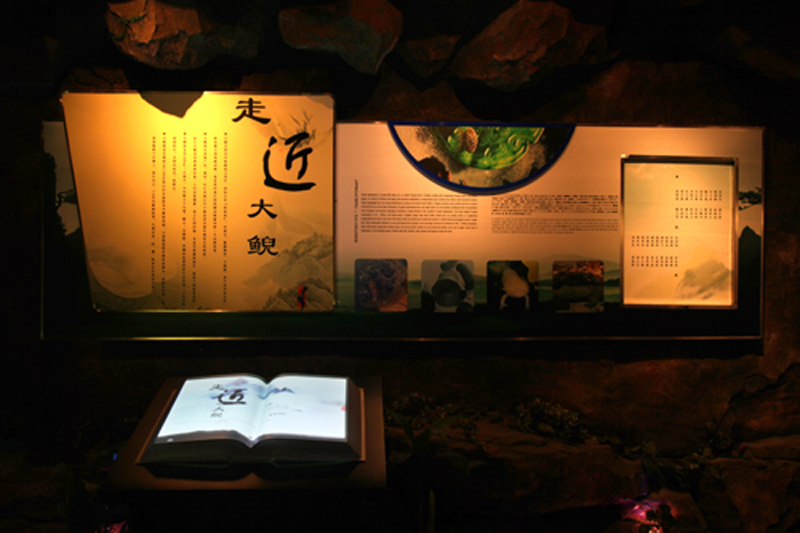 本展項(xiàng)是介紹大鯢各方面知識(shí)的圖文展板,展板前特別設(shè)置了一本《走近大鯢》的電子書(shū),電子書(shū)深入介紹了大鯢的形態(tài)特征、生活習(xí)性等豐富的知識(shí)點(diǎn)。展墻對(duì)面是一個(gè)展示了大鯢標(biāo)本的展臺(tái)。本展項(xiàng)通過(guò)展板結(jié)合標(biāo)本的形式,以靜態(tài)結(jié)合互動(dòng)的展示手段,讓游客全面獲悉大鯢的知識(shí)。