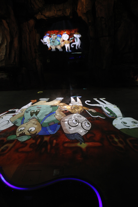 當(dāng)游客進(jìn)入到家園空間的最后階段的時(shí)候,家園四周的景象由秋天自然過(guò)渡到冬天,舉目一片白雪皚皚的景象;地面上投影效果也會(huì)變得白雪皚皚,游客在投影區(qū)域中走動(dòng)會(huì)留下他們的腳印。
