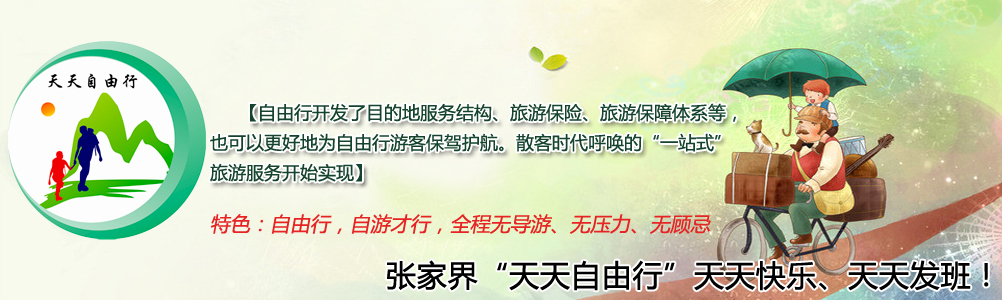 “天天自由行”是由(張家界市中國(guó)旅行社、張家界海外國(guó)際旅行社有限公司、張家界中世國(guó)際旅行社有限公司、張家界天馬國(guó)際旅行社有限公司、張家界中青旅國(guó)際旅行社有限公司、張家界市青年旅行社有限公司、張家界湘西青年國(guó)際旅行社有限公司、中國(guó)旅行社總張家界公司等35家旅行社)共同開發(fā)的張家界新型旅游產(chǎn)品,我們是根據(jù)當(dāng)前旅游的發(fā)展趨勢(shì),客戶群體所需求而進(jìn)行;“天天自由行”產(chǎn)品自由度和豐富度將是客戶的主要訴求;同時(shí),“天天自由行”也將主張服務(wù)能力的回歸;“天天自由行”張家界暢游無極限! 隨心而行,從這里開始! “天天自由行”帶給你不一樣的輕松和驚喜!